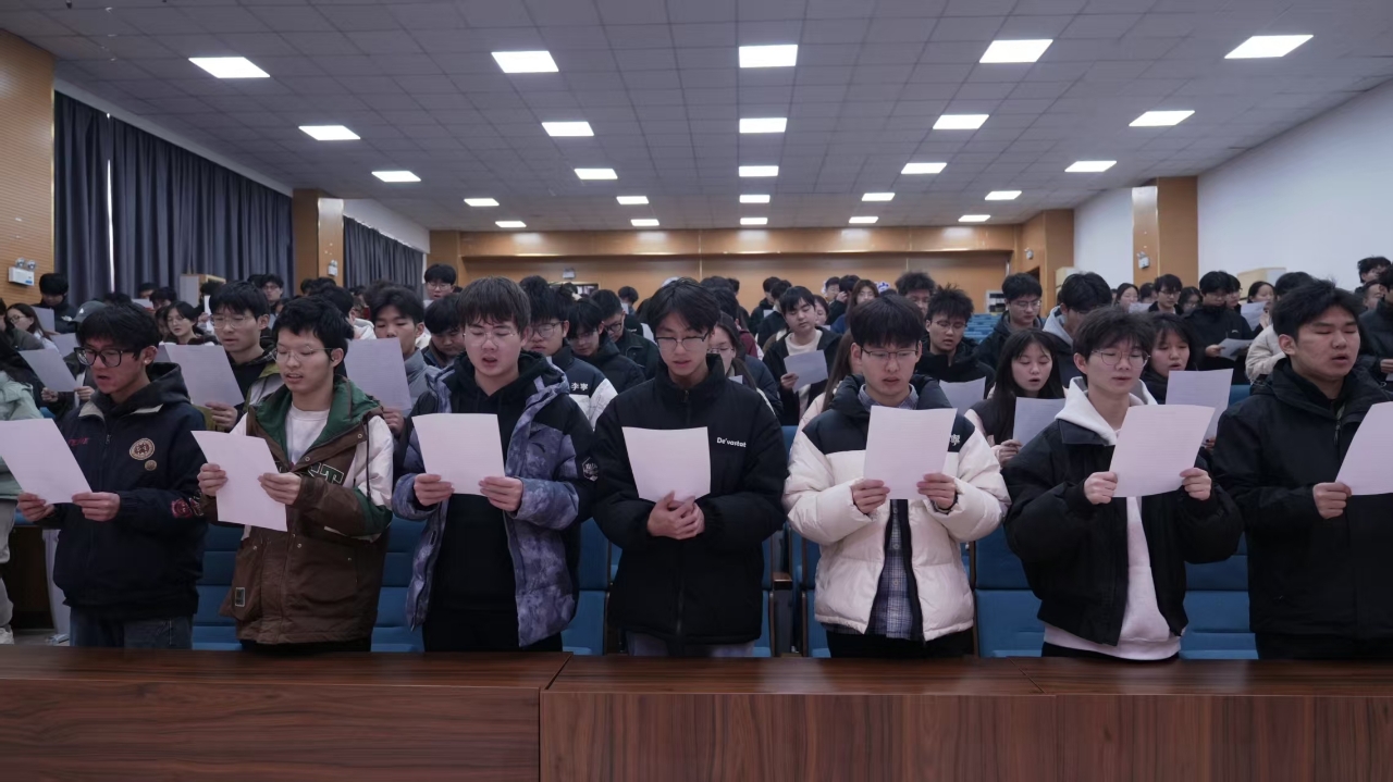 上午10时,直播活动在庄严的国歌声中正式开始。在学校主会场求实楼报告厅,校党委宣传部副部长朱春花及300余名学生代表齐聚一堂,同步观看了北京主会场的活动实况。