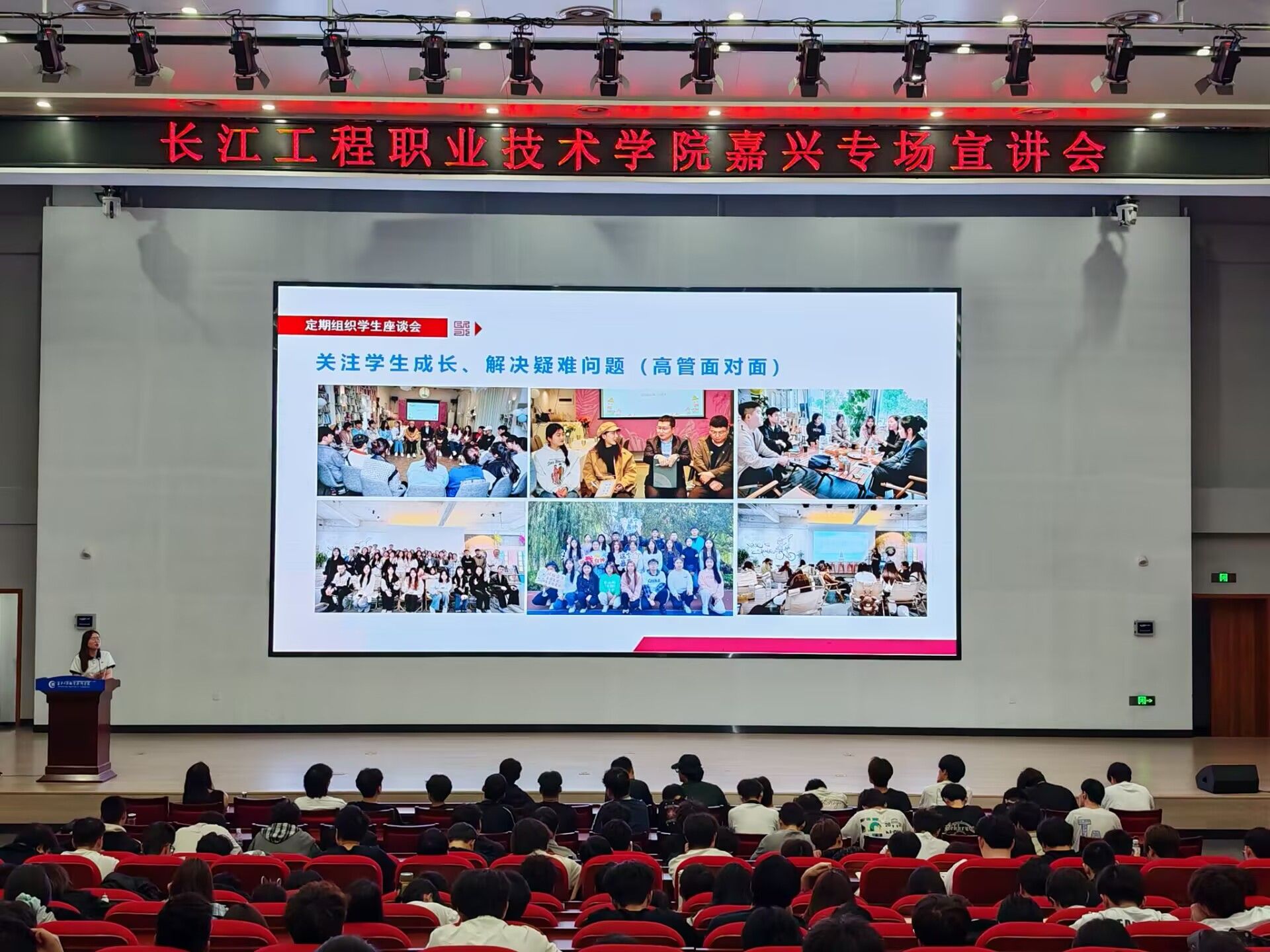 招聘会现场气氛热烈。嘉兴大学生社会服务中心主任郑一萍向同学们介绍了嘉兴市针对大学生就业的相关支持政策,表达了广纳贤才的强烈意愿,接着来自嘉兴的企业代表们依次登场,围绕机电一体化技术、电气自动化技术、工业机器人技术、光伏发电等专业领域,向同学们全面且深入地介绍行业发展趋势、企业发展历程、核心业务板块、前沿工艺技术以及人才需求规划。企业代表们结合实际案例,生动地展示了行业的广阔前景和企业的创新活力,让同学们对未来职业发展有了更清晰的认知。