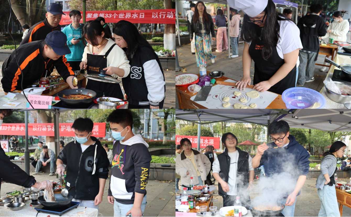 来自四面八方的学生颠锅翻勺,一道道家乡特色美食色香味俱佳。川渝学子的水煮肉片麻辣鲜香,瞬间点燃味蕾;山东同学的临沂炒鸡酱香浓郁,口感鲜美嫩滑;贵州同学的凉拌折耳根地域特色鲜明,嚼起来脆嫩爽口;蒙古国留学生的“Khuushuur”(蒙古馅饼)一出锅便惊艳全场,外表金黄酥脆,咬一口鲜嫩多汁,一道道“改良版家乡菜”展示了各地饮食文化的特色与交融。一旁,还有现代农业与生物工程学院的师生热情展示着“科学膳食宝塔”“吃动平衡指南”“健康体重管理”等主题展板,专业讲解《中国饮食文化》,普及科学营养知识,推广健康新示范,呼吁大家从我做起,不断推进健康中国建设。