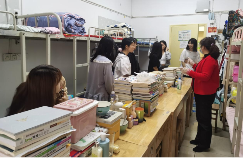 何晓华:我们所从事的工作都是一些生活上的锁事,每天到宿舍里与学生交流,交代她们出门一定要关好水电,锁好门,开窗通风,打扫卫生,整理内务,发现有个别学生有心结,我主动找她谈话,并为她解忧,让同学们在温馨舒适的宿舍愉快过好每一天。