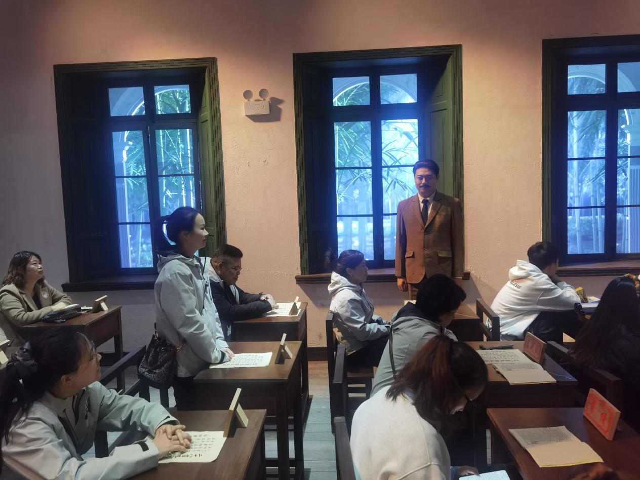 随后,教师们走进《恰同学少年》青春剧场,沉浸式体验情景剧。演员们以生动的演绎、饱满的情感,再现了毛泽东与蔡和森、杨开慧等革命青年在湖南第一师范求学时“指点江山、激扬文字”的热血场景。教师们沉浸于剧情之中,进一步领会红色文化的精神内核与时代价值,接受了一次深刻的思想洗礼。