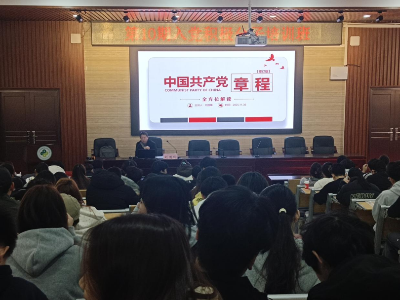 为推动入党积极分子深化对党的理论的理解,筑牢理想信念根基,11月29日上午9点,环境资源学院分党校组织第十期入党积极分子开展《中国共产党章程》专题党课学习,学院党总支书记刘国锋担任主讲人,为全体学员带来了一堂兼具理论深度与实践温度的党课。