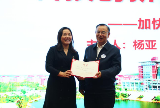 丁丹为杨亚先生颁发我院专业学位硕士研究生校外指导老师聘书