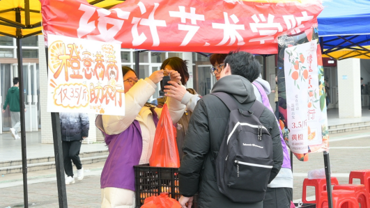 设计艺术学院的师生们用创意与热情为乡村振兴添上一抹亮色,并通过线上线下联动推广。活动累计售出脐橙800余斤,吸引400余名师生参与购买,单日最高售卖180余斤脐橙,平均每日售卖100余斤。影制2401班查天昱说:“这次我参与学院橙子义卖,与伙伴们协作助人,收获满满。同学的笑容与支持,让汗水化为温暖传递,赋予了此次活动别样的意义。”