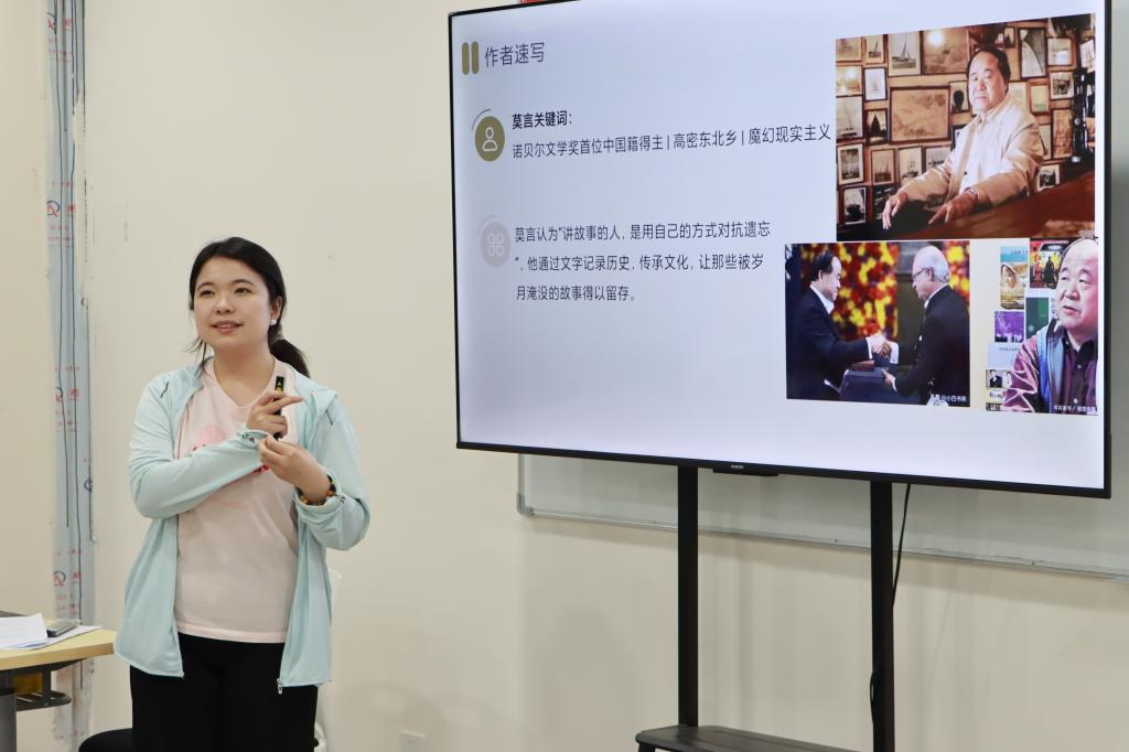 活动伊始,主持人以"破壳"为喻,阐述了突破自我、勇敢成长的活动主旨。随后,四位分享者依次登台,以PPT展示的形式,分别对《你当像鸟飞往你的山》《追风筝的人》《呼啸山庄》《不被大风吹倒》四部作品进行了深度解读。从内容梗概到人物剖析,从文学价值到现实启示,分享者们以独特的视角引发在场师生的热烈讨论。