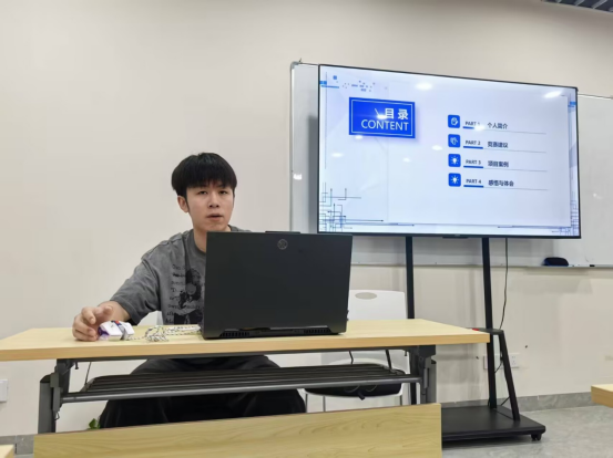 孙肇文以轻松幽默的自我介绍开场,迅速拉近了与学弟学妹的距离。他围绕学科竞赛这一主题,并结合自身经历,将竞赛类型分“开放类”与“命题类”剖析了不同竞赛的挑战点和备赛策略。提及具体赛事,孙肇文如数家珍,“互联网 +”“挑战杯”“集创赛” 等赛事的特点、赛制等信息在他的讲述中清晰呈现。最后,他将多年参赛心得凝练为一句寄语送给同学们:“主动参与,敢想敢做,竞赛的舞台永远为那些准备充分的人敞开。”