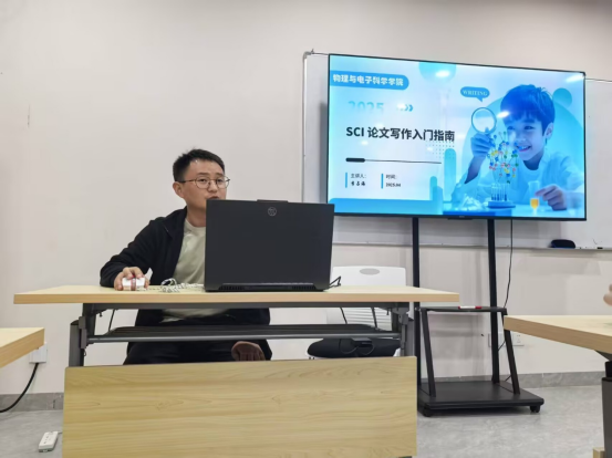 李占海则聚焦“SCI论文撰写”这一学术高地,以“小白如何攻克SCI”为切入点,分享了自己在求学期间发表了21篇高水平学术论文的励志故事。他科普了SCI的分区机制及其学术价值,并直言:“一篇高质量的SCI论文,能让你在升学、求职中‘降维打击’。” 他从选题创新性、文献调研方法展开,结合自己发表论文的案例,逐步拆解写作逻辑:“论文选题要做到 “小切口,深挖掘”,文献综述不能只是简单堆砌,而应是与前人研究进行批判性对话。”