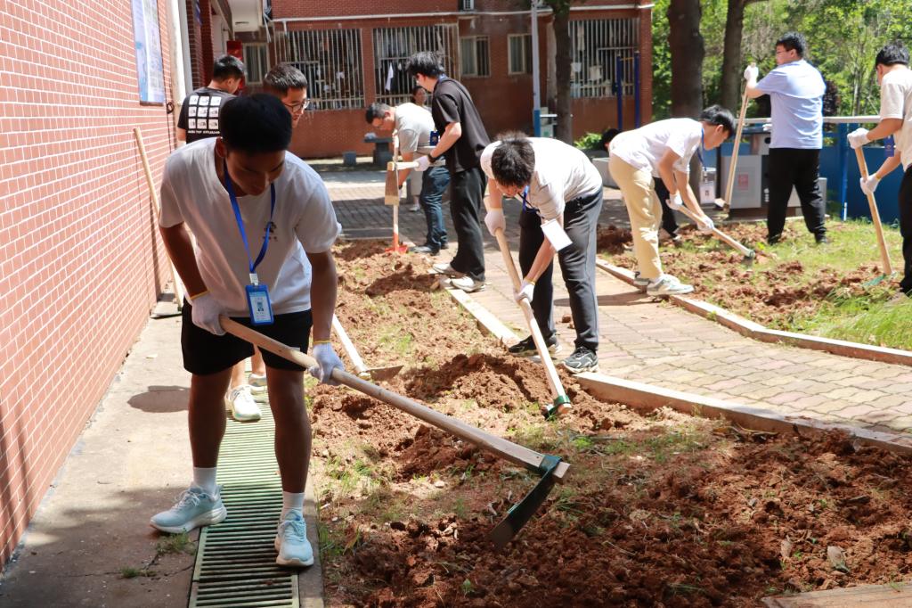 经过两天的努力,“一站式”学生社区综合服务中心旁原本板结的土地变得疏松平整,花坛填满鲜土。随后,师生一同种下鲜花,期待未来花开满园,为学生社区再添生机与色彩。