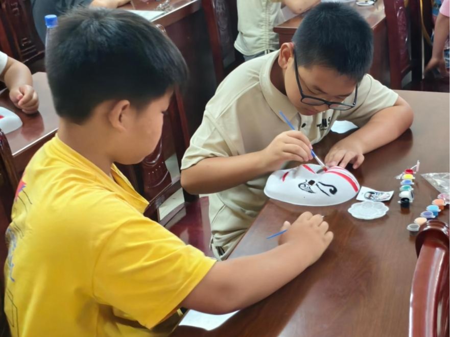 动手实践环节中,孩子们化身为非遗“小小传承使者”,用心投入京剧脸谱创作。在志愿者指导下,画出脸型、定位五官、勾勒线条、填充色彩……一张张色彩绚丽、栩栩如生的脸谱便在同学们的指尖诞生了。“以前只在电视上看脸谱,亲手制作太有意思了!”青少年袁仪兴奋地表示,“我们不仅要认识非遗、了解非遗,更要传承非遗,做中华优秀传统文化的代言人!”