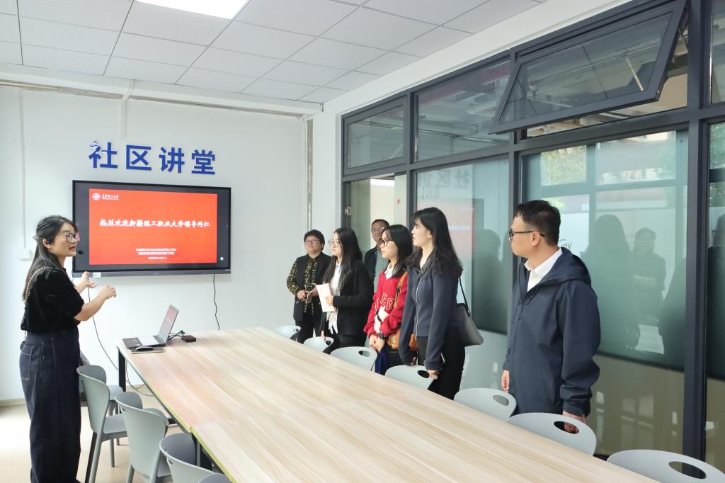 为加强高校思想政治工作经验互鉴,共同探索新时代立德树人的有效路径,10月24日下午,新疆理工职业大学党委学生工作部(学生处)相关负责人常徕一行7人来我校,就“一站式”学生社区建设工作进行考察交流。我校学工部副部长黄阿明、“一站式”学生社区综合服务中心主任郭梅等全程陪同。