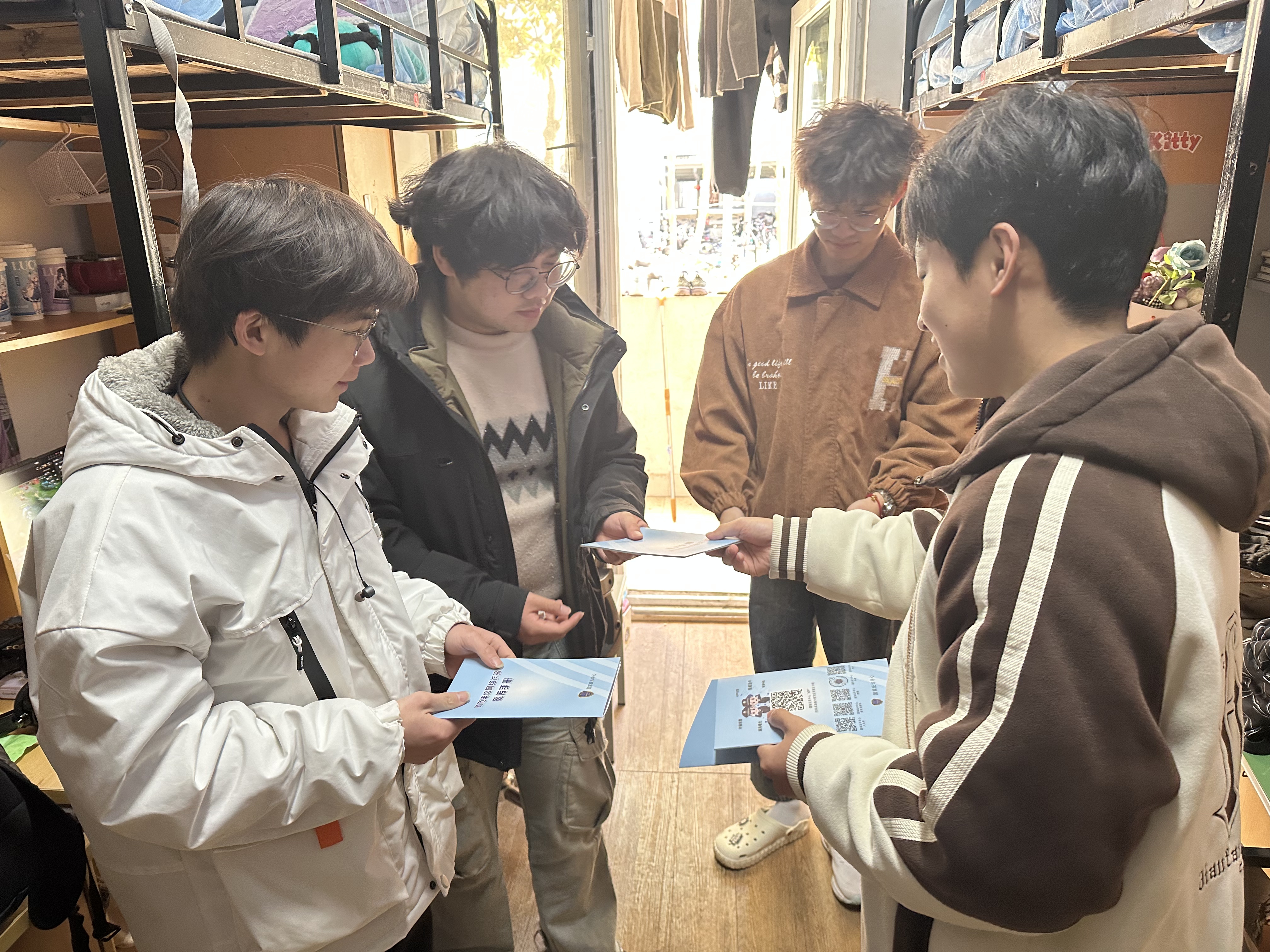 活动开始,辅导员陈志鹏通过“冒充客服”“刷单返利”“网络游戏虚假交易”等10类高发案例,系统讲解诈骗分子在诈骗环节中可能用到的话术和技术手段,以实际案例对自管会同学进行系统培训。随后,自管会成员走进学生宿舍,用通俗易懂的语言,为同学们讲解诈骗分子的作案手法和背后逻辑,同时传授实用的防范技巧,如不随意透露个人信息、谨慎对待网络交易等,将反诈知识传递给每一位同学。