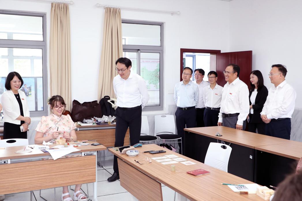 工作坊在我校期间,恰逢江苏省政府副省长赵岩一行来校调研。在中美学院,赵岩一行与工作坊的美方师生进行了现场交流,并观看了师生的中国篆刻作品。他希望学校扩大中美师生交流,让更多美国青年了解中国。
