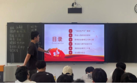 返校后,实践团及时整理所学所感,面向本院同学开展安全主题分享。宣讲内容从安全生产法切入,涵盖安全法律法规、文化知识、应急器材使用、不安全行为心理分析以及“安全生产月”精神解读,生动呈现了安全工程专业的现实意义与职业魅力。现场同学认真聆听、记录,并分组展开讨论,反响热烈。