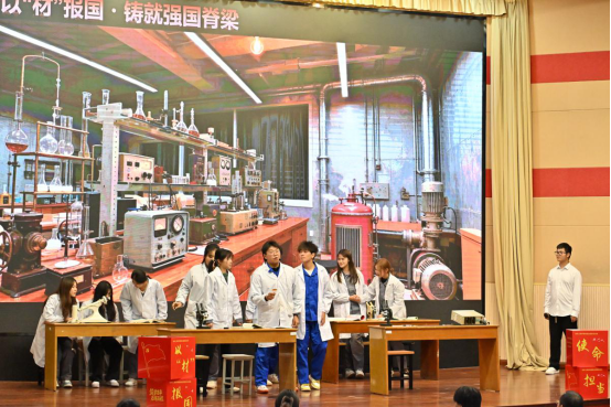 情景剧《千炉铸一叶》将现场气氛推向高潮。舞台上,演员们用极具张力的表演重现师昌绪团队为攻克涡轮叶片技术难关,历经千余次实验、反复优化的艰辛历程。“千炉淬火,一叶成钢!”这句台词喊出了科研工作者的执着坚守,也点燃了现场师生的奋斗热情,雷鸣般的掌声久久回荡。