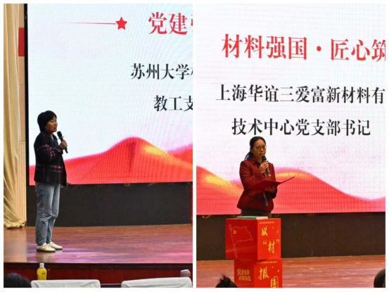 “对话未来·共谋发展”环节聚焦“科研+育人”协同路径,为青年成长指明方向。上海华谊三爱富新材料有限公司技术中心苏琴书记以“材料强国·匠心筑梦”为题,分享了“工匠精神与创新思维的结合,是推动行业进步的核心动力”。