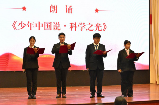 随后,集体朗诵《少年中国说·科学之光》:“纵有千古,横有八荒;前途似海,来日方长……”激昂的语调、坚定的眼神,传递出新时代材料学子“请党放心,强国有我”的壮志豪情。
