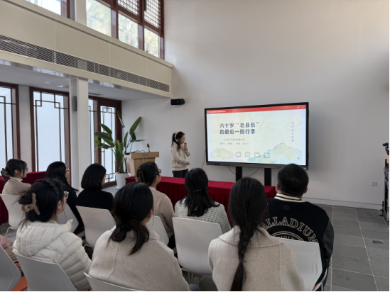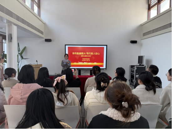 小语种学生党支部的葛姚同学以“六十岁‘老县长’的最后一担行李”为题,利用中德双语讲述冯梦龙离任时的故事。“64岁的冯梦龙,用一根扁担挑着《寿宁待志》、破旧衣物和泛黄书籍,这就是他四载为官的全部行囊……”她结合冯梦龙将俸禄投入民生实事的事迹,将其廉洁精神与新时代青年的责任担当相联系,让廉洁文化打破语言壁垒、焕发时代活力。