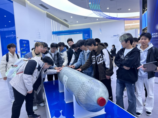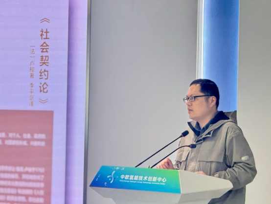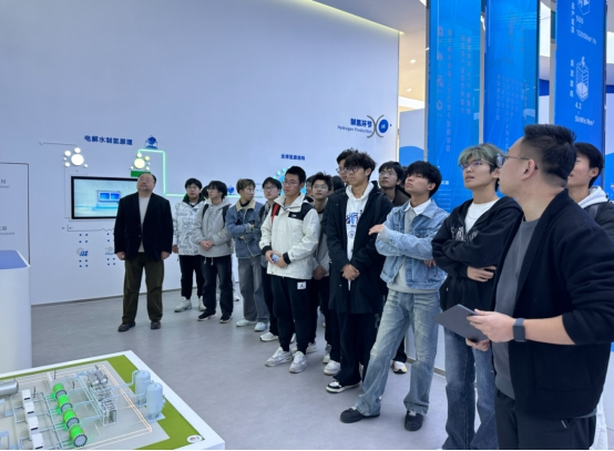 不同于传统的室内读书分享,本次活动创新性地将“课堂”搬到氢能技术研发一线。师生们先后走进氢能技术展示区、核心研发实验室等区域,近距离触摸燃料电池的精密构造,详细了解氢能在新能源汽车、分布式能源等领域的应用现状,深入探讨行业发展中面临的伦理规范与责任边界。沿途的交流中,师生们不时驻足热议,将《社会契约论》中“契约是自由意志的结合”“公共利益至上”等经典论述与氢能技术研发中的学术诚信、数据隐私保护、产业协同发展等实际问题相结合,让尘封的经典在科技实践的场景中焕发新生。