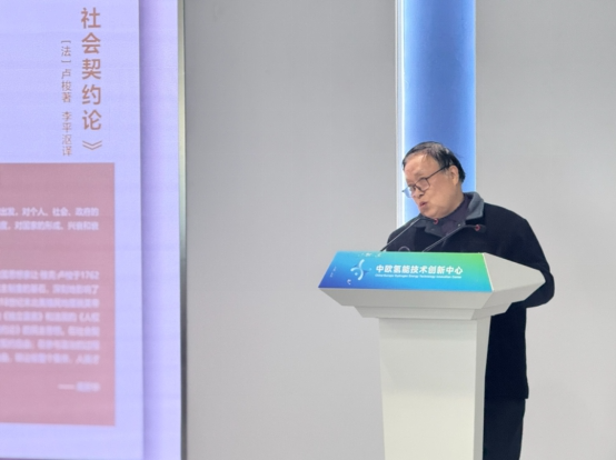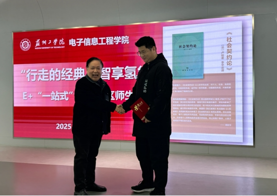 为深入落实“书香校园”建设与大学生经典阅读工程要求,将经典理论与工科特色、科技实践深度融合,近日,苏州中欧氢能技术创新中心内书香氤氲、思想激荡。电子信息工程学院E+“一站式”学生社区以“践行契约精神,赋能科技青年”为核心,举办“行走的经典·智享氢能”师生共读主题团日活动,将《社会契约论》的深度研读与氢能前沿科技的实地感知相结合,打造“行走的阅读课”,引导青年学子在理论与实践的碰撞中领悟契约精神,在科技与人文的交融中坚定报国信念。校高等教育研究所教授冀宏,学院关工委副主任张平,校团委王奇安,学院党委副书记、副院长顾胜贤及2025级学生代表共赴“经典+科技”的育人之约。