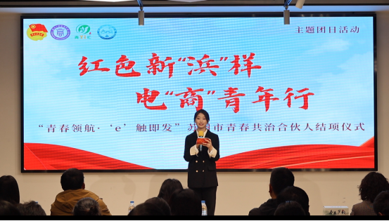 近日,苏州工学院商学院于东湖校区开展“红色新‘浜’样·电‘商’青年行”主题团日活动暨“青春领航·‘e’触即发”苏州市青春共治合伙人结项仪式。活动围绕文化共建、实践成果与技术赋能,集中展示了青年学子运用电商直播平台传播红色文化、助力乡村农文旅发展的创新实践。