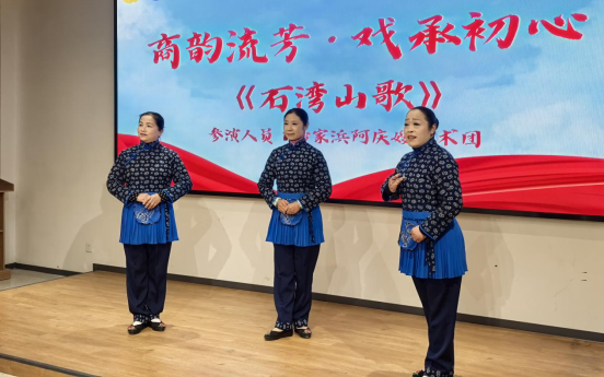 商学院农文旅推荐官团队以视频《实践中的农文旅密码》开场,展示了青年学子扎根乡村开展实践调研,线上线下协同发力,让红色故事“活”起来,让非遗好物“火”出去的农文旅融合实践。主题宣讲《芦荡火种·鱼水长情》带观众回顾了新四军的英勇事迹;话剧表演《沙家浜·薪火传》生动演绎了烈士仲国鋆以医者之身作掩护,于险境中传递情报的英雄事迹。随后,阿庆嫂艺术团的沙家浜戏曲串烧《石湾山歌》、朗诵节目《以青春之名,传承芦荡薪脉》轮番上演,以青春视角重构沙家浜的红色记忆,展现新时代青年对地方红色文化的理解与传承。