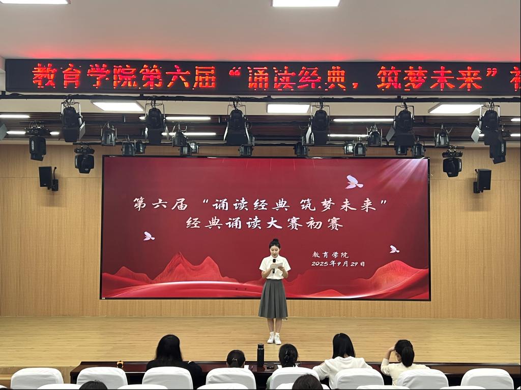 本次初赛以“诵读经典 筑梦未来”为核心主题,面向全院学子广泛征集作品,经过前期班级选拔与学院初审,最终16组参赛选手脱颖而出进入初赛环节。参赛作品涵盖革命经典、现代诗歌、文学名篇等多个类别,既有展现家国情怀的红色篇章,也有描绘生活之美的抒情佳作,充分体现了教育学院学子对经典文化的多元理解与创新表达。