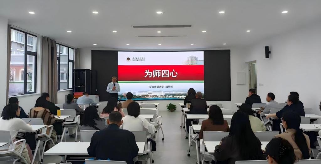 为深入学习贯彻习近平总书记关于教育的重要论述,大力弘扬教育家精神,全面加强师德师风建设,10月13日上午,马克思主义学院举办专题讲座。讲座特邀党的二十大代表、全国最美思政课教师、安徽师范大学马克思主义学院路丙辉教授,以《为师四心》为题,为全院教师作专题报告。校党委副书记牛春雨出席并作总结讲话,院领导班子成员及全体教师参加学习,现场气氛热烈。