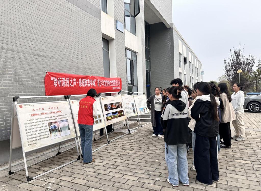 活动最后,学生们在文物展板前驻足聆听讲解,深入了解滁州市博物馆的馆藏文物。通过对镇馆之宝“汉带流甗形器”的解读,大家认识到古代器物中蕴含的节水智慧,进一步感受到勤俭精神在中华文明中的历史传承与现实意义。