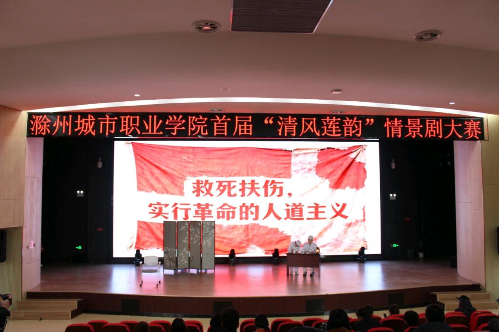 为深入学习宣传贯彻党的二十大和党的二十届历次全会精神,贯彻落实中共中央《关于加强新时代廉洁文化建设的意见》,扎实推进党八项规定精神入脑入心,深化清廉学校建设,12月4日,校首届“清风莲韵”情景剧大赛在润德楼四楼报告厅举办。