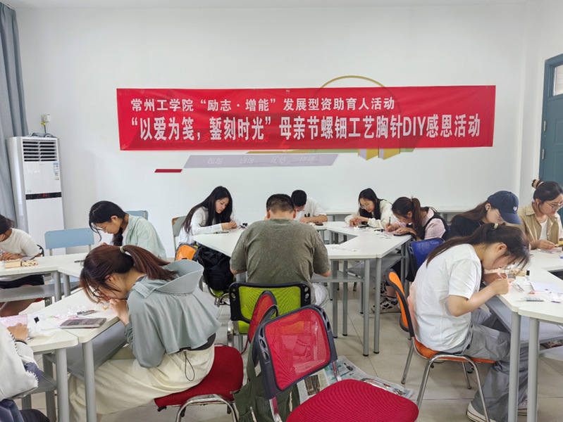 为弘扬中华优秀传统文化,深化感恩教育,推进发展型资助育人工作,5月7日,常州工学院受助学生社团伴随学社联合常州邮政,于校内一站式学生社区举办“以爱为笺,錾刻时光”母亲节螺钿工艺胸针DIY感恩活动。活动创新融合非遗手作与情感表达,为同学们搭建起感恩母亲的温馨平台,切实彰显育人实效。