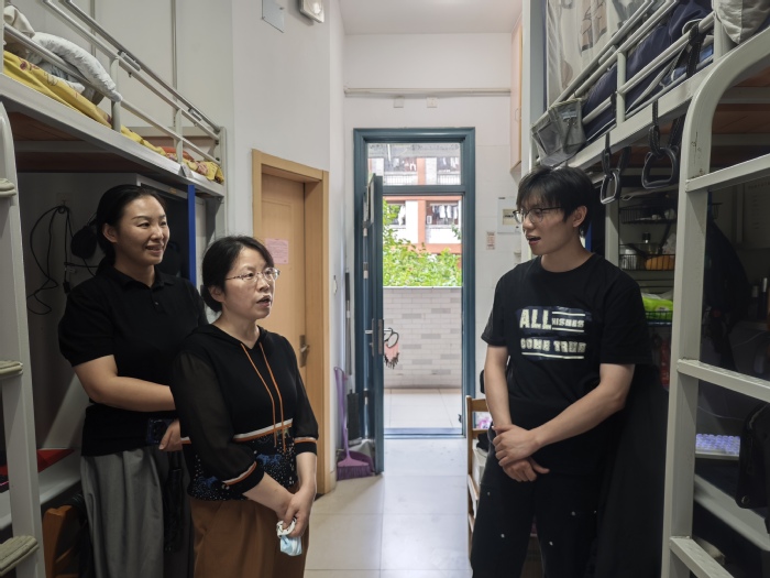 走访过程中,院长蔡建文细致询问了学生的暑期生活与返校行程,听取了大家对新学期的学习目标与规划,赞扬了同学们饱满的精神状态,并鼓励大家在新学期中夯实专业基础、积极拓展综合素质。院党委书记张巧凤重点走访毕业生宿舍,仔细了解学生的就业进展和考研准备情况,叮嘱同学们在冲刺阶段既要专注目标,也要注意身心健康,提高安全防范意识。