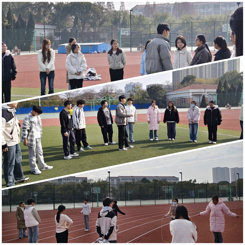 实践环节在操场展开,同学们依次体验了三个紧扣主题的活动。“抓鸭子”游戏作为“破冰”起点,迅速营造出轻松活泼的氛围,有效拉近了彼此距离;随后的30秒跳绳计时赛,则是“砺己”环节的集中体现,同学们在短暂而专注的挑战中,体验着突破自我、坚持到底的成就感。最后的“共行”阶段——“两人三足”团队竞速,则深刻考验了信任、沟通与协作能力,将活动气氛推向高潮。整个过程中,同学们全情投入,展现出良好的精神风貌。