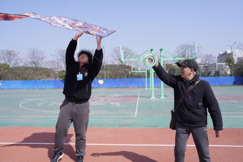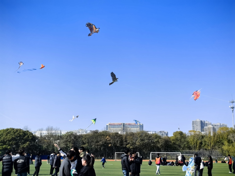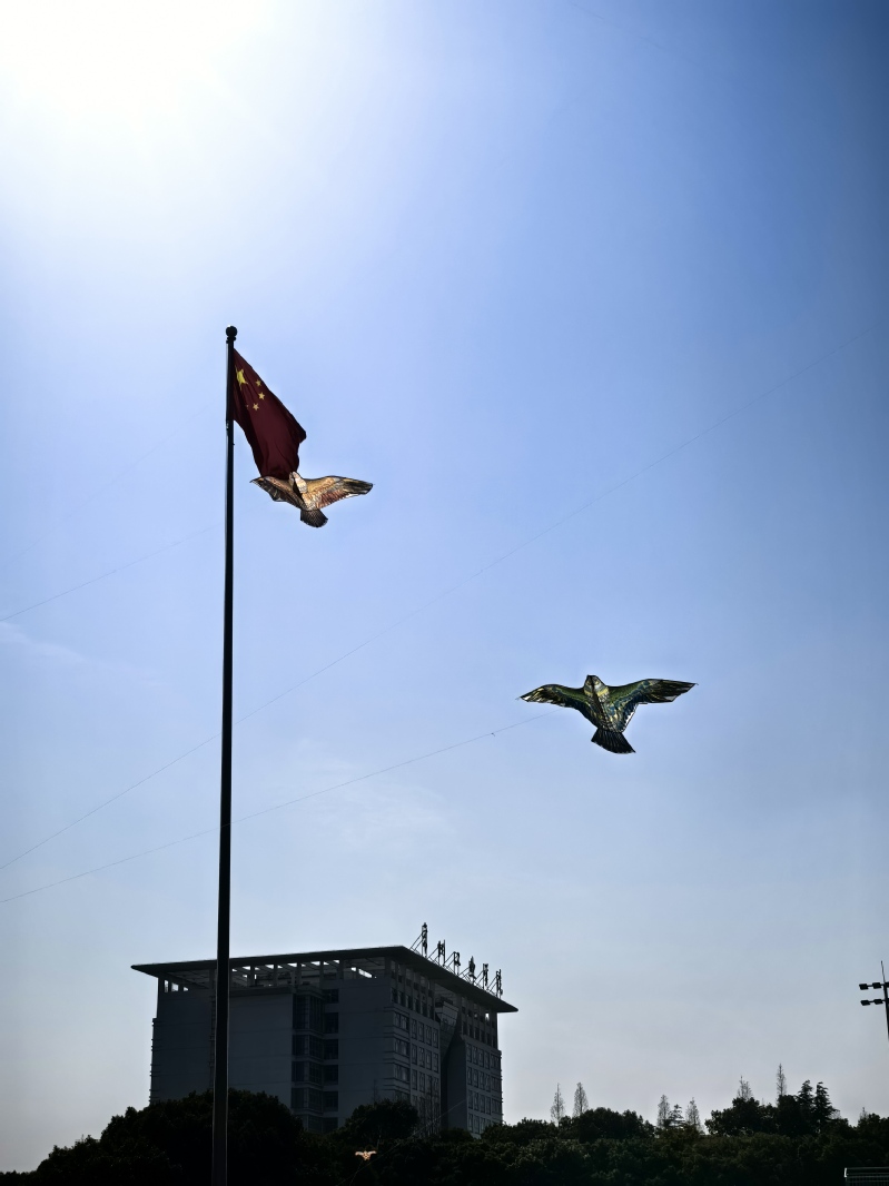 和煦的春风拂面而来,放飞环节正式拉开序幕。大家纷纷带着亲手制作的风筝来到操场中央,一手握线轴、一手拉风筝线,迎着春风奔跑、放线、牵引,一系列动作娴熟有序。五彩斑斓的风筝次第升空,在蔚蓝的天空中自由翱翔、摇曳生姿,与春日的校园、奔跑的身影相映成趣。