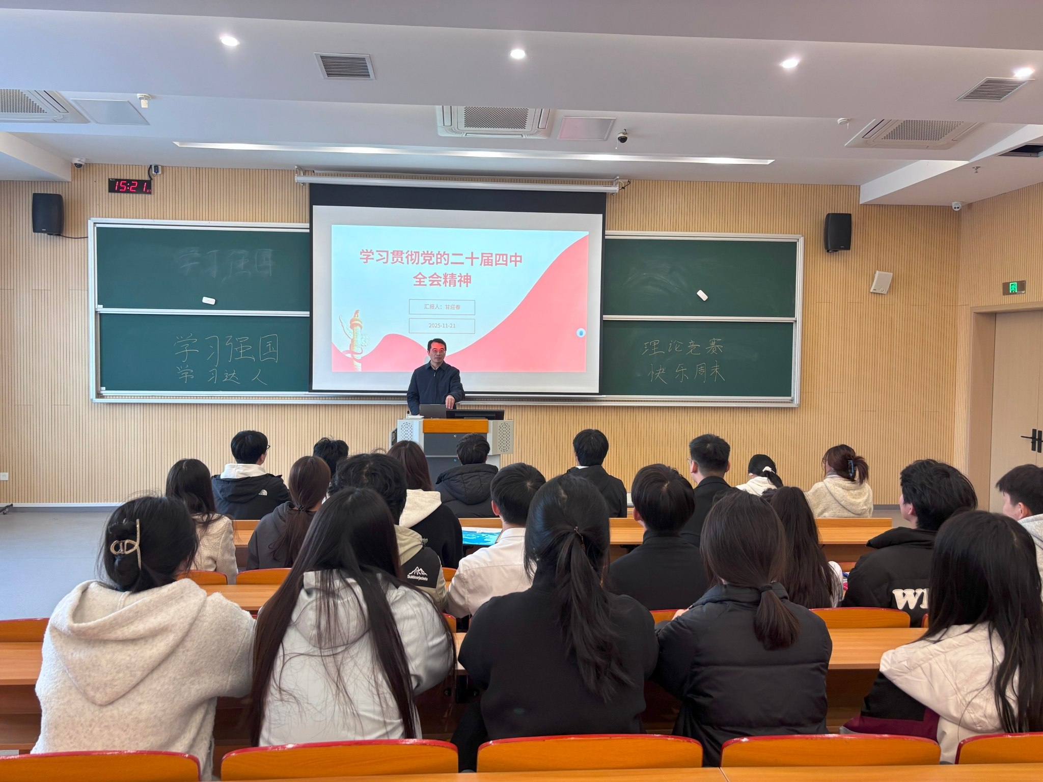 11月21日下午,经济管理学院在溧阳基地思行楼举行“常青藤”大讲堂之学习贯彻党的二十届四中全会精神专题辅导讲座,讲座由学院党总支副书记甘迎春主讲,学院入党积极分子、新时代理论协会成员50余人参加活动。