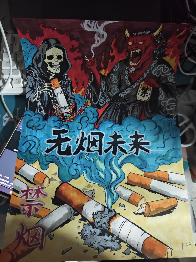 参赛作品立意鲜明、表现生动,既有以形象化视觉语言揭示烟草危害的漫画作品,也有依托科学数据和真实案例警示健康风险的创意设计。经专业评审,最终评选出一等奖1名、二等奖1名、三等奖1名及优秀奖若干。获奖作品将在校园公共区域进行集中展示,以此强化师生健康意识,推动无烟文化传播。