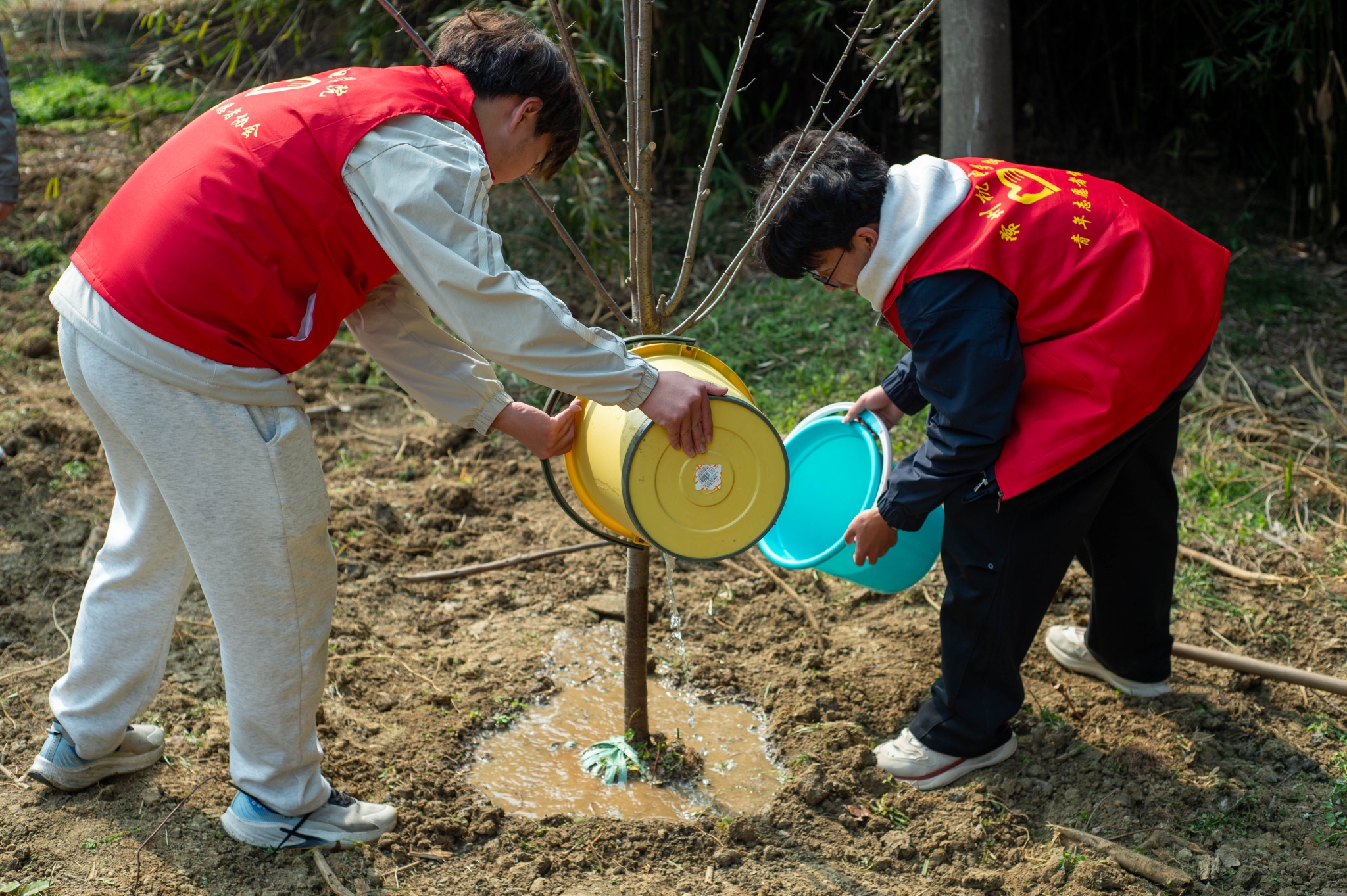 在老师的指导下,志愿者们分工协作,有序开展除草、整地、挖坑、栽种、培土、浇水等工作,完成了10余颗行道树补植以及20余株樱花树苗种植。“我们亲手种下的树苗,将成为我们与学校共同成长的最好见证。”来自机器人2438班的志愿者吕鑫伟同学说。
