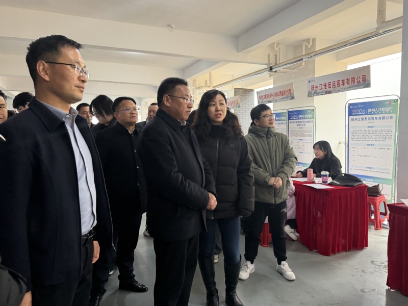 3月17 日下午,我校联合扬州市江都区人力资源和社会保障局、马鞍山市人力资源和社会保障局、湾沚区人力资源和社会保障局、马鞍山市科创和人才发展集团,在会峰校区举办2026年“提质扩容 春季攻坚”专场招聘会。校党委常委、副校长曾献功深入招聘现场调研指导,并与用人单位交流洽谈。
