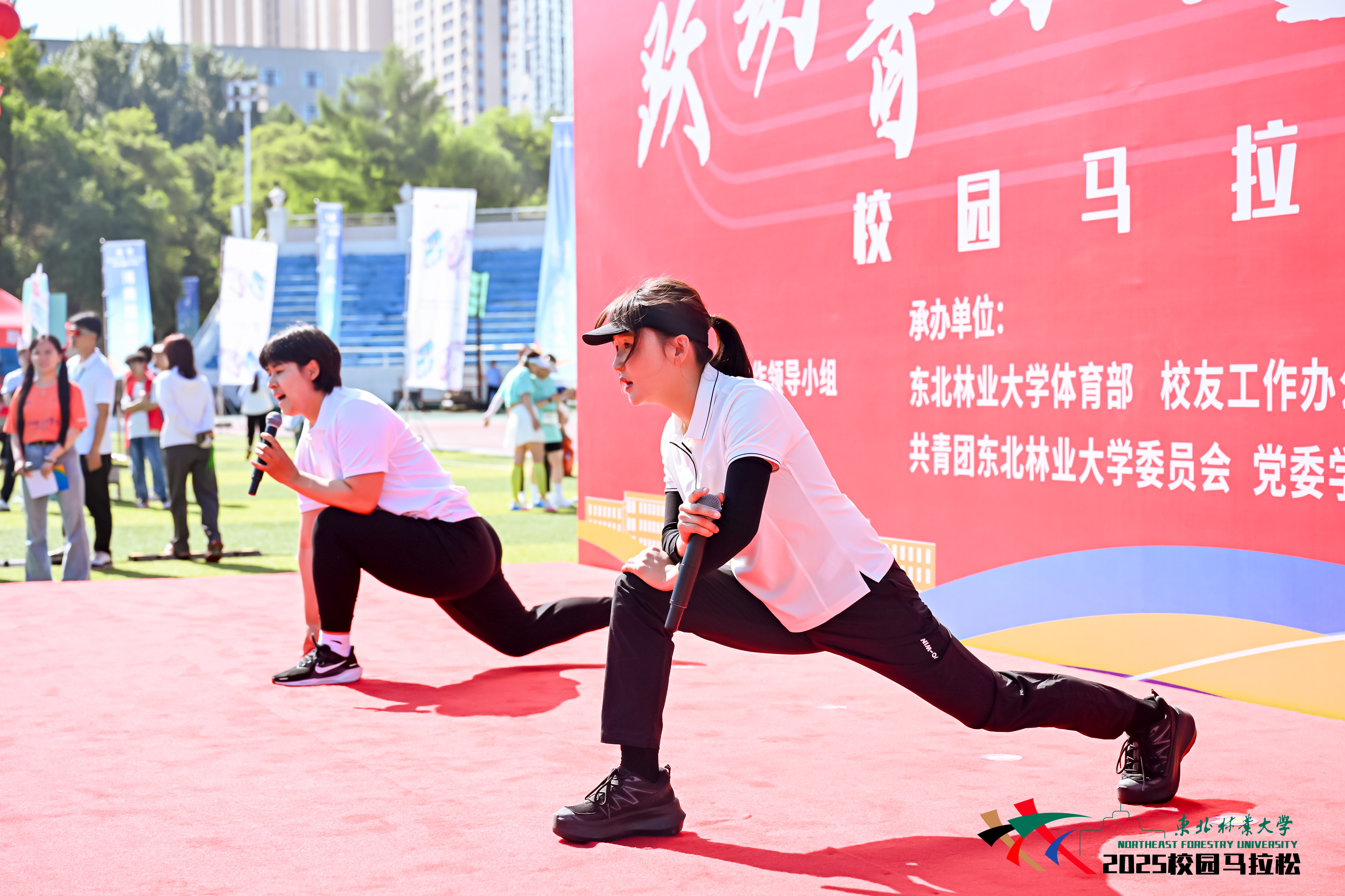 校长宋文龙致开幕词。他指出,自去年首届校园马拉松赛开赛以来,活动在广大师生和校友中取得了热烈反响,深受大家喜爱。他强调,作为一所积极贯彻落实教育强国建设、生态文明建设、美丽中国建设战略的林业高校,完善立德树人机制、健全德智体美劳全面培养体系是学校的一项重要任务。本次比赛也是学校践行“五育并举”育人理念的生动实践,希望大家在参赛中磨砺尊重规则、热爱集体、乐观向上、永不言败的精神品质,充分感受体育运动带来的快乐和魅力,用汗水诠释体育精神。