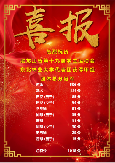 喜报!我校体育健儿勇夺黑龙江省第十九届学生运动会团体总分第一(大学甲组)
