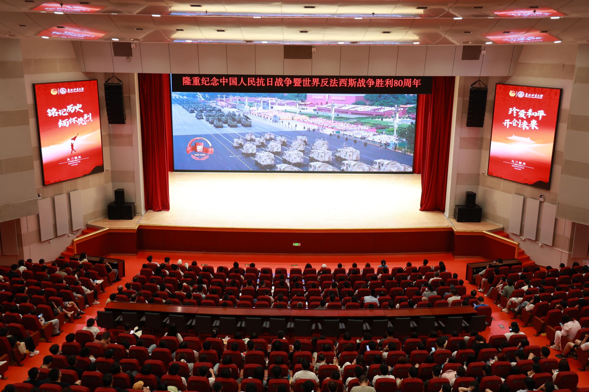 9月3日是中国人民抗日战争暨世界反法西斯战争胜利80周年纪念日。当天上午9时,北京天安门广场举行纪念大会。中共中央总书记、国家主席、中央军委主席习近平发表重要讲话并检阅部队。我校师生在科学会堂、各学院会场、教室等地集中收看九三阅兵。“燃起来了”“热泪盈眶”“太骄傲了”“震撼且超燃”……广大师生激情澎湃、热血沸腾,纷纷表示,国家富强是幸福生活的保障,我们要铭记历史、珍惜和平,用奋进的精神、自强的担当,创造新的历史,奏响振兴中华、强国有我的时代强音。