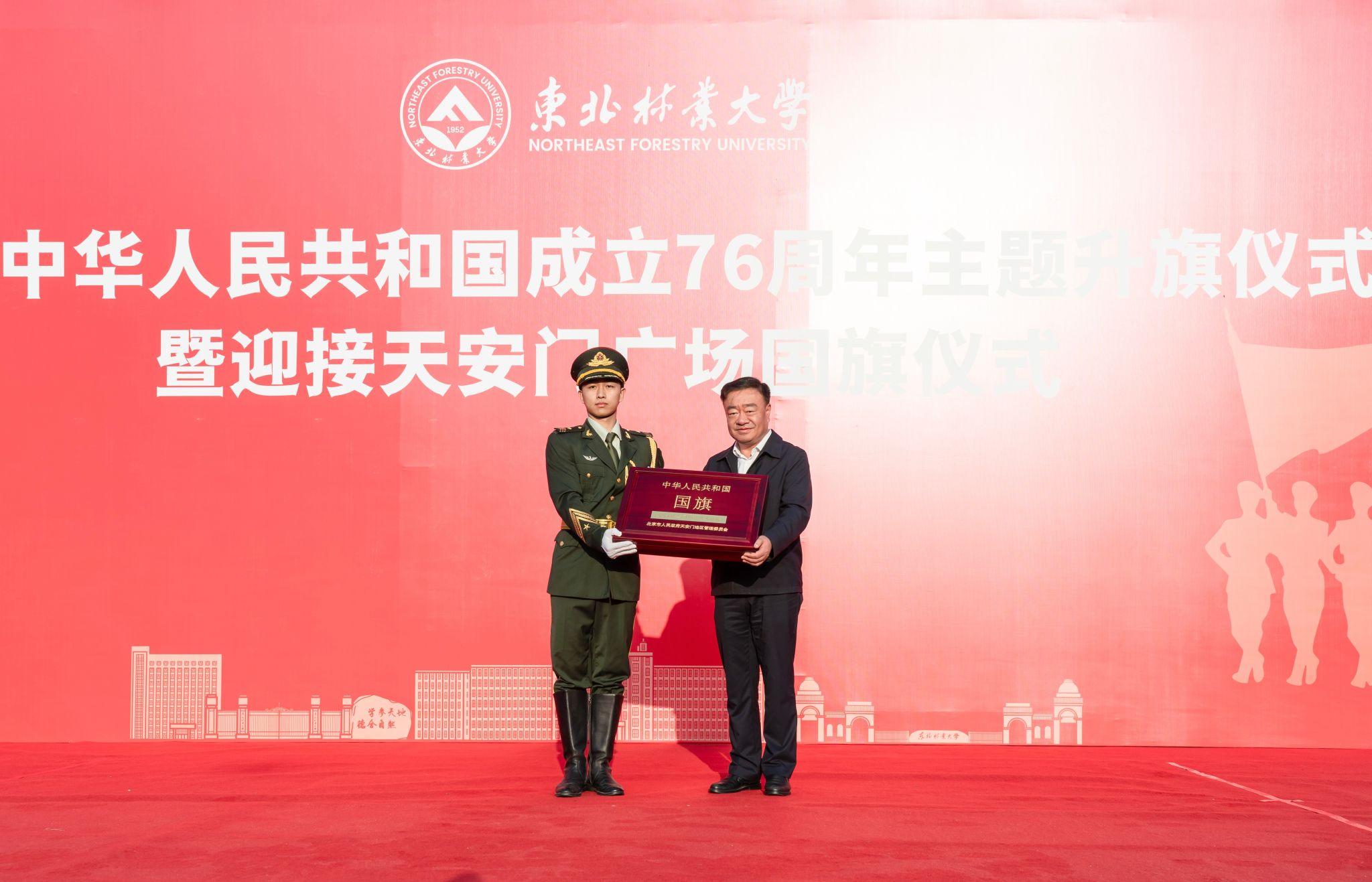 校长宋文龙宣读了赠旗证书。学校党委书记孙猛将国旗郑重转交国旗护卫队。