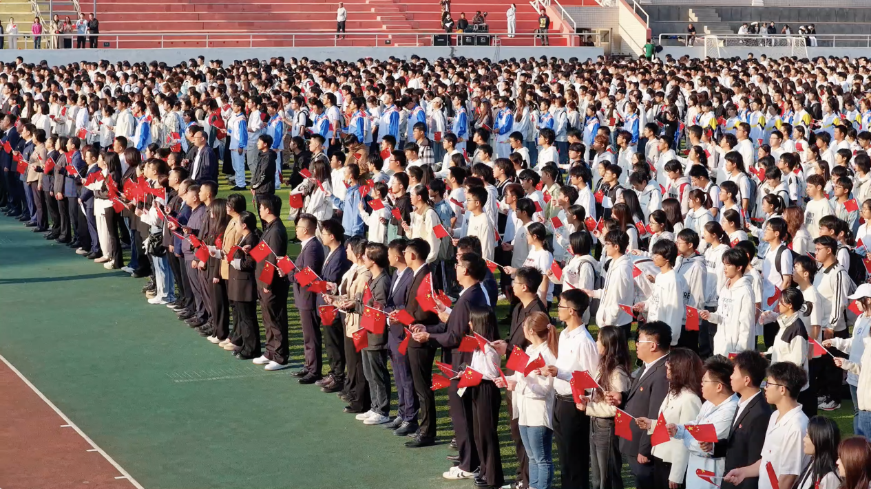 仪式在全场齐唱《歌唱祖国》中进入尾声,激昂的旋律响彻田径场,歌声中满含对祖国的深情祝福。
