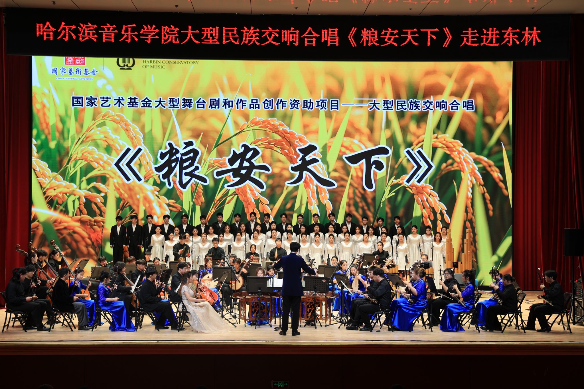 据悉,国家艺术基金资助项目大型民族交响合唱《粮安天下》,是由哈尔滨音乐学院倾力打造,中共黑龙江省委宣传部、黑龙江省文化和旅游厅、黑龙江省文学艺术界联合会、哈尔滨市文化广电和旅游局共同推出的一部“艺述”粮安天下,“通感”龙江力量,唱响时代旋律,具有时代内涵和历史价值的重大现实题材作品。