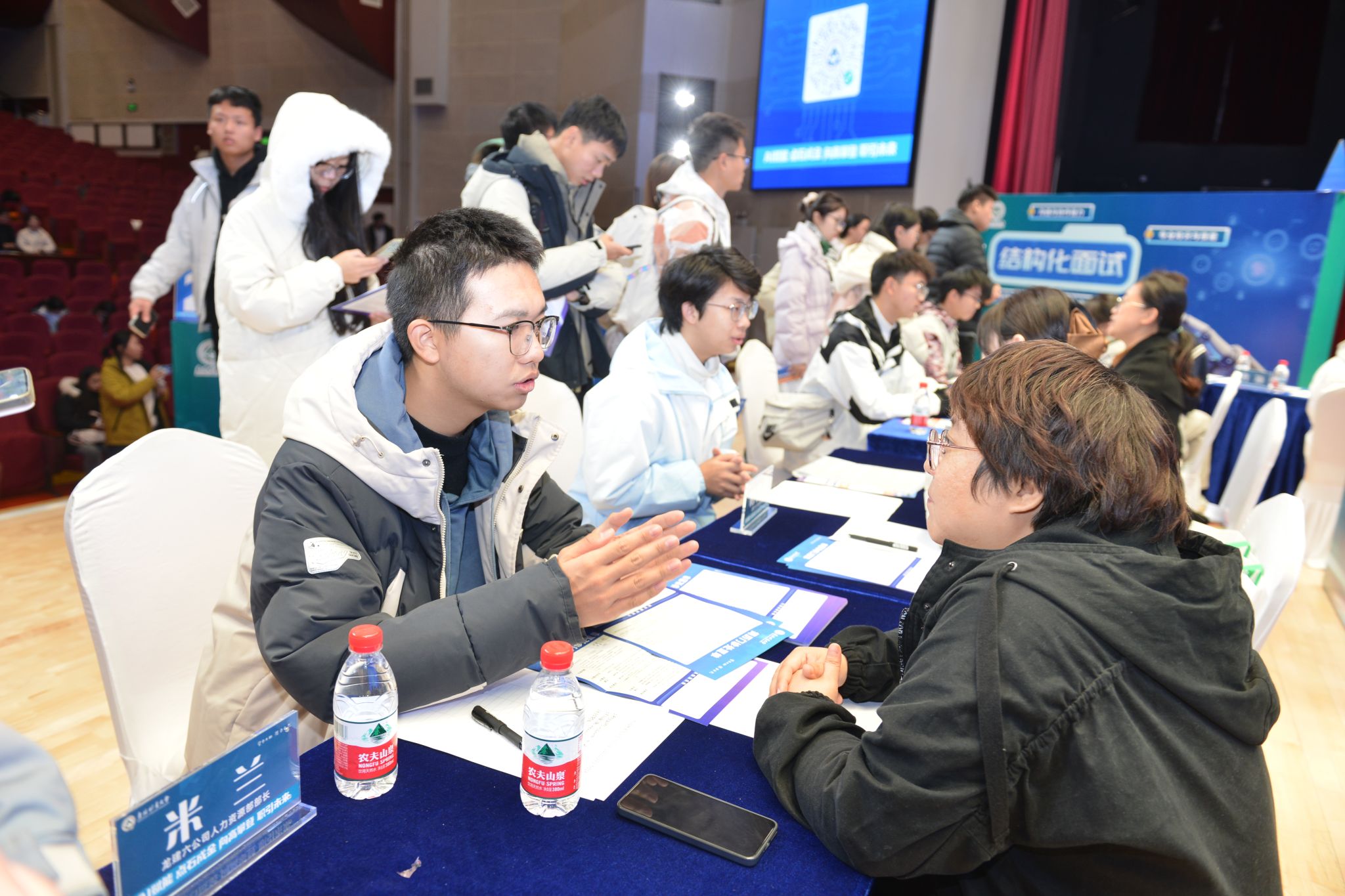 实战模拟面试区成为活动现场的另一大热门区域。学生在这里实时体验结构化、无领导小组讨论等秋招常见面试场景。“你认为一个成功的领导者需要具备哪三项特质?”……在无领导小组讨论区,同学们展开激烈辩论,教师观察员实时记录沟通协作亮点;结构化面试间里,学生们在教师引导下调整表达逻辑;答辩式面试区则还原了科研项目汇报场景,助力研究生在学术岗位面试中脱颖而出。