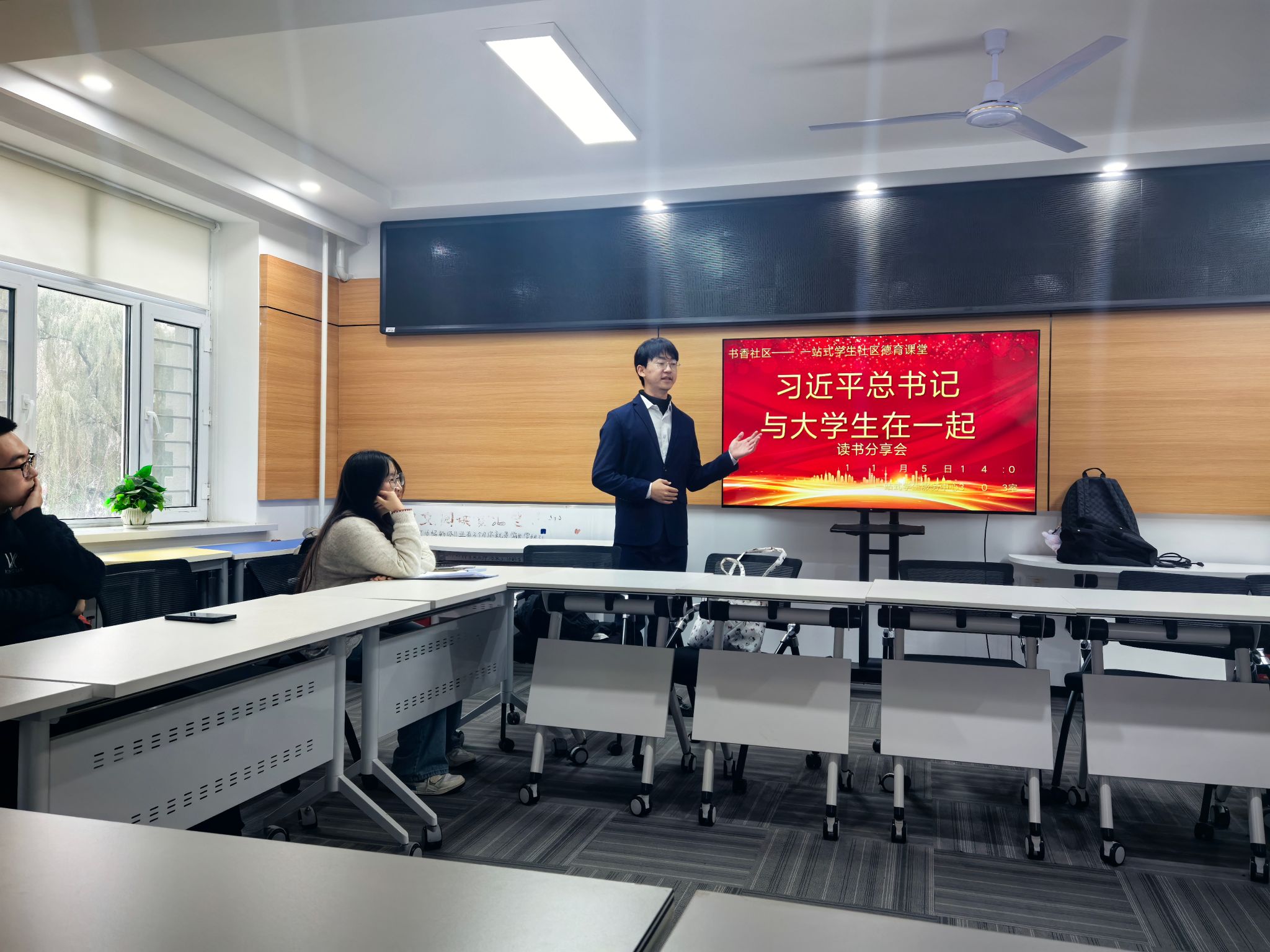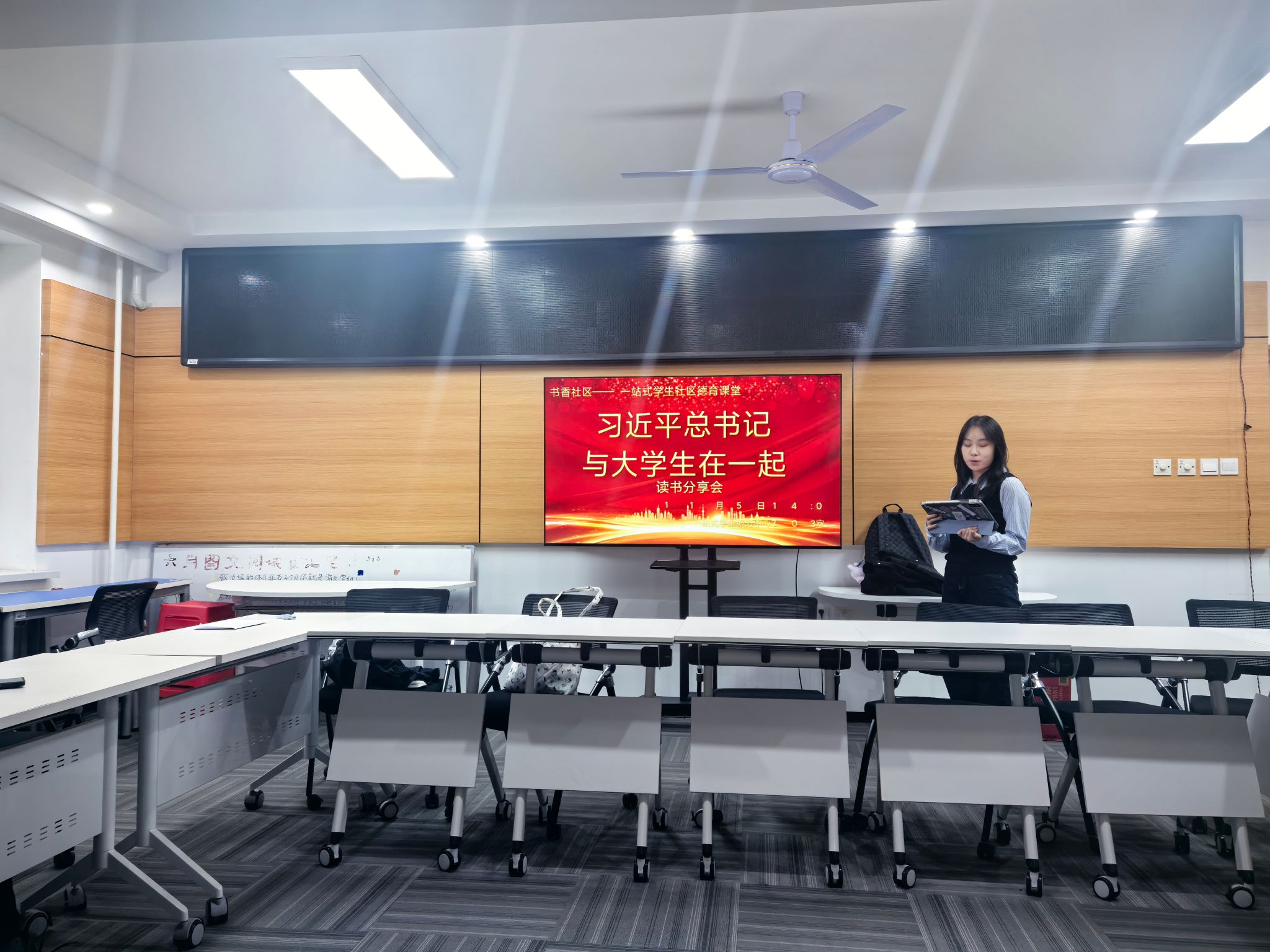 为丰富社区活动内涵,提升社区德育教育实效,11月5日,一站式学生社区举办社区德育课堂第一期读书分享会活动,活动主题是“习近平总书记与大学生在一起”。由大学生事务中心联合马克思主义学院团委举办,师生们在一站式服务中心多功能室通过共读经典、分享感悟,汲取奋进力量。