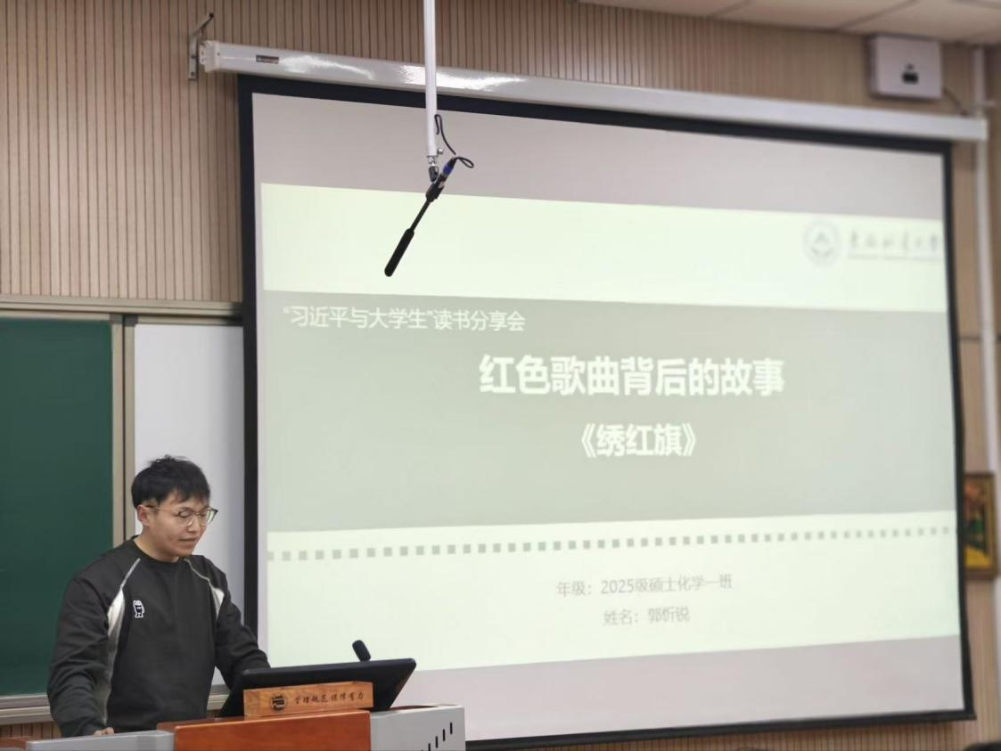 以音乐回望历史,用书香启迪未来。11月12日,“一站式”学生社区联合化学化工与资源利用学院,在丹青楼408举办“红色歌曲背后的故事”读书分享会。四位分享人动情讲述了红色经典歌曲的诞生背景、传唱场面和历史意义,为到场同学带来一次难忘的党史学习教育。