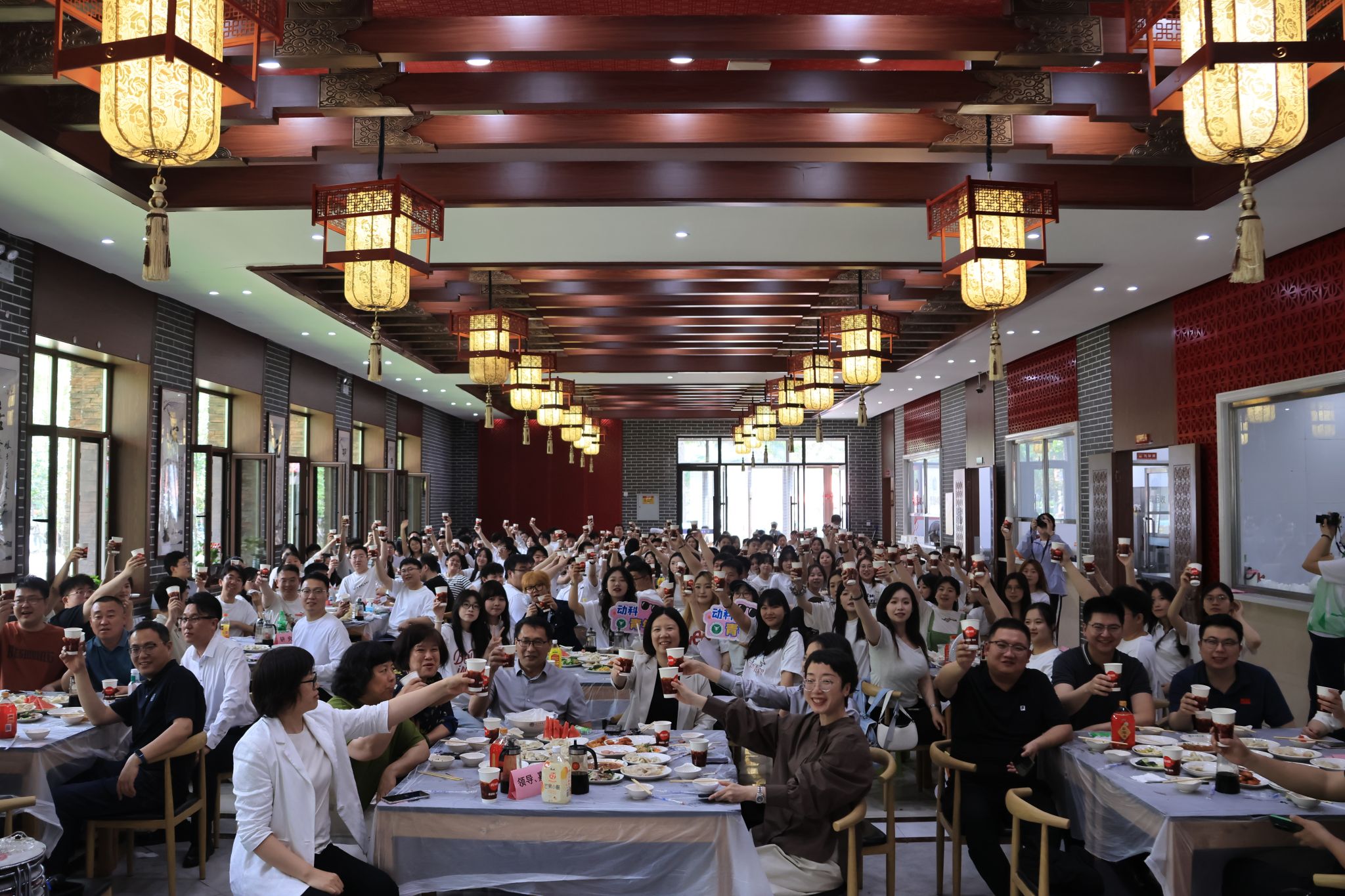 动物医学学院领导、教师及辅导员为每位毕业生手写姓名藏头诗祝福,亲手包制"上车饺子",以劳动实践诠释"爱校如家"育人理念,宴席间共话成长点滴。院长李金龙致辞期望学子永葆"博学精医"热忱、坚守"厚德载医"信仰。本科生代表、研究生代表、辅导员老师分别为大家带来了《歌曲串烧》《万疆》《木材东街的日子》《无名的人》歌舞节目,送上了一场精彩的视听盛宴。