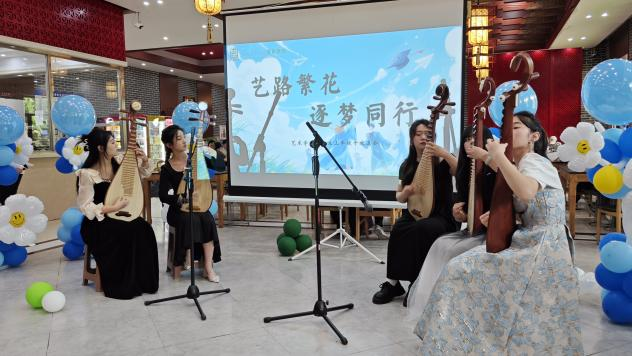 艺术学院以“艺路繁花·逐梦同行”为主题。院长刘丹寄语毕业生“坚定初心,勇敢追梦”。活动在琵琶合奏中拉开帷幕,致辞寄语深情厚意,节目表演、视频播放饱含青春回忆,抽奖环节高潮迭起,礼品精美贴心。学院以真挚关怀为毕业生送上温暖与祝福,激励青年以昂扬姿态迈向人生新阶段。