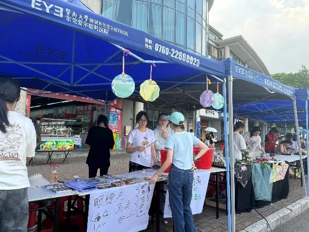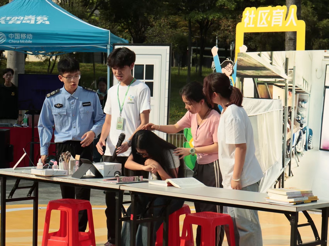 与此同时,学生活动中心前和学生社区也是热闹非凡。本次社区文化节内容丰富,涵盖了劳动教育实践成果展销会、桌游、跳蚤街手工物品交易市集、中华文化游园会、雷锋月主题展、美月创想之乡村市集、厚德载运活力社区、“安社区、护美舍、创和谐”等诸多主题文化活动。各位摊主热情高涨,积极地在摊位前招揽来往的师生。手工艺品、文创产品等摊位前更是人头攒动,精美的手工艺品和可爱的娃娃吸引了众多好奇的目光。摊主们热情地为来往的师生介绍自己摊位的游戏规则,同学们也纷纷排起长队参与小游戏,通过游戏获得精美的礼品与印章,每个人的脸上都洋溢着满足的笑容。大家在摊位之间流连忘返,不仅感受到了社区与学院组织这次活动的热情,更在欢乐中放松了身心,暂时忘却了生活中的烦恼,沉浸在温暖的社区文化氛围之中。