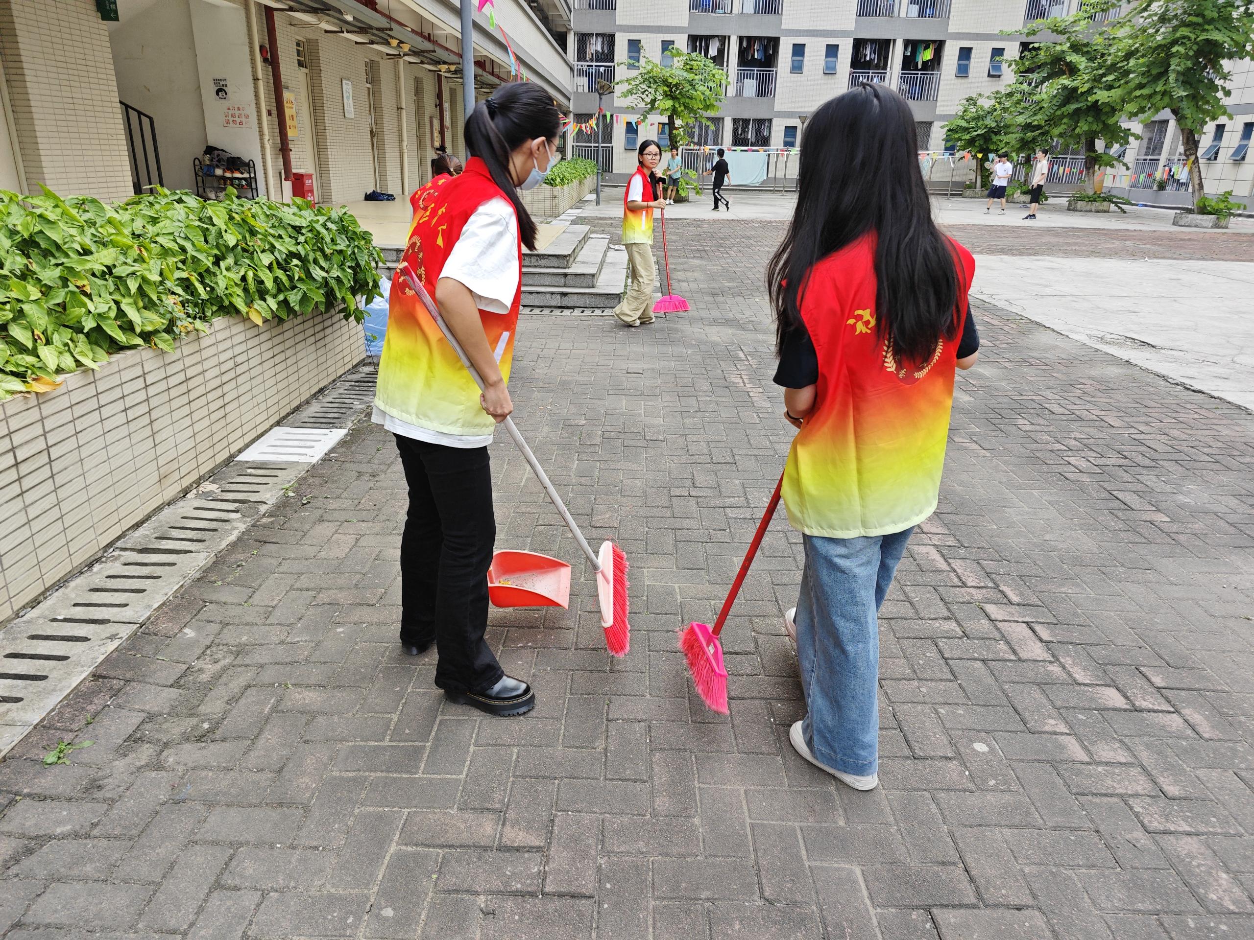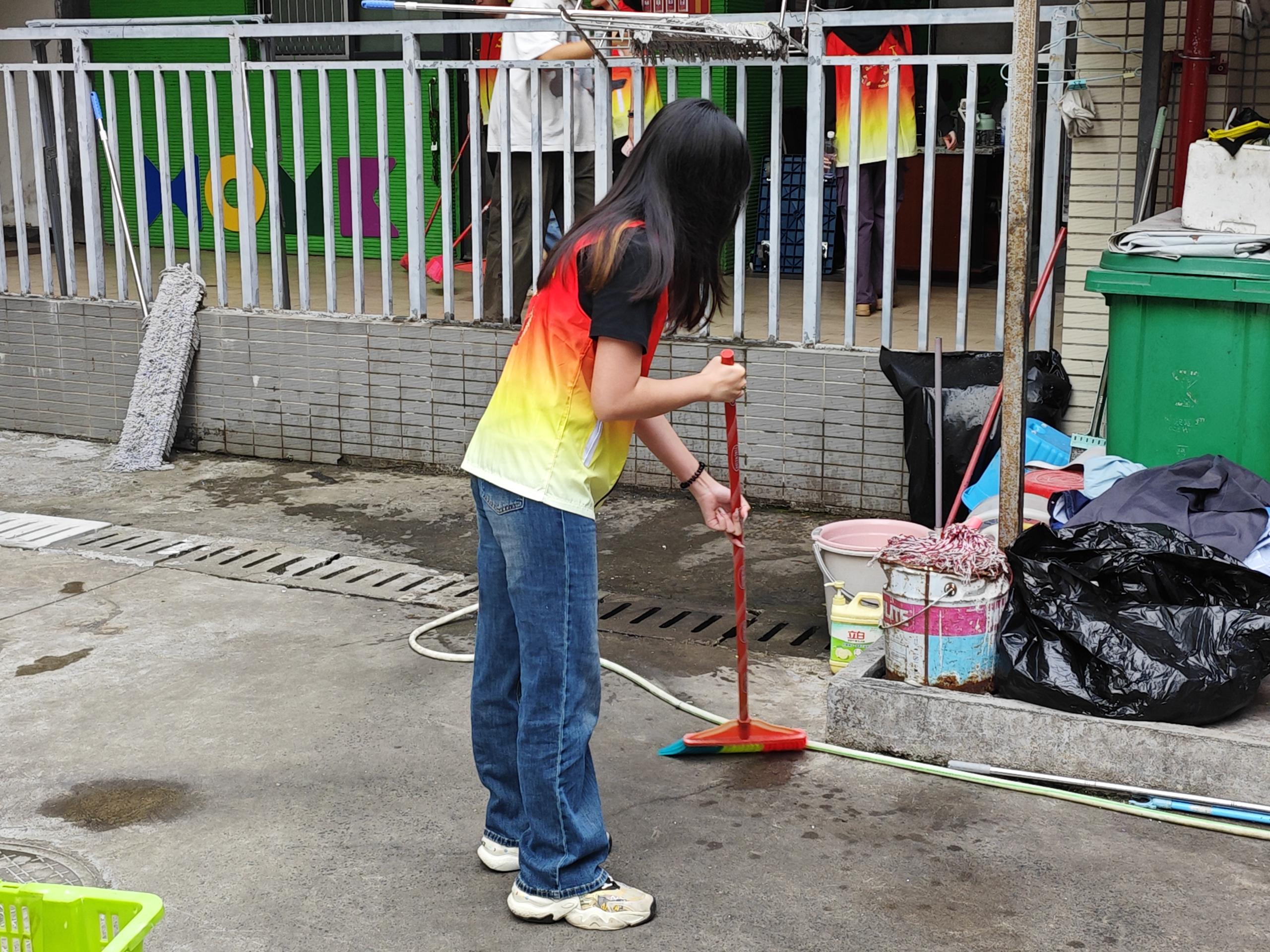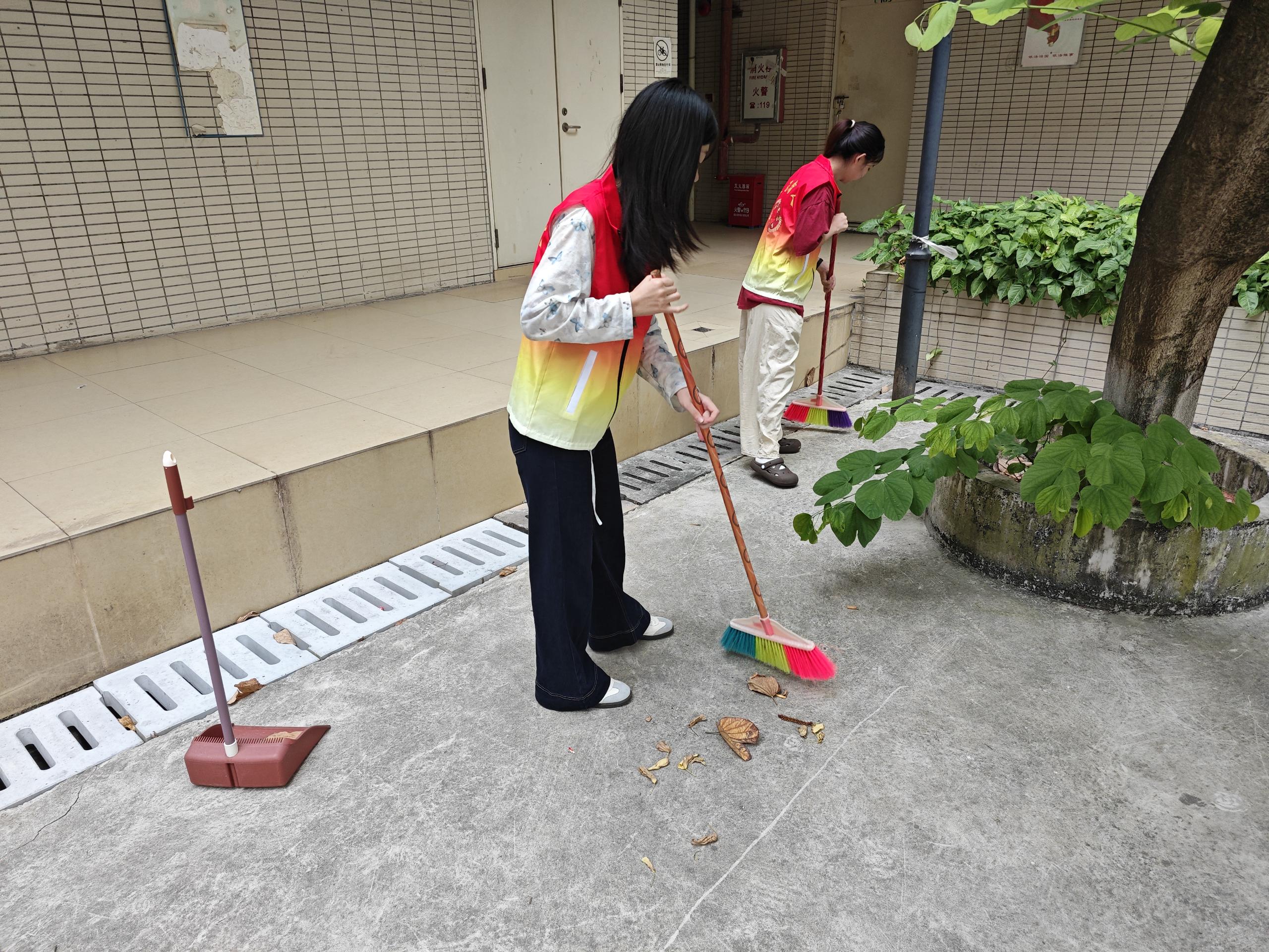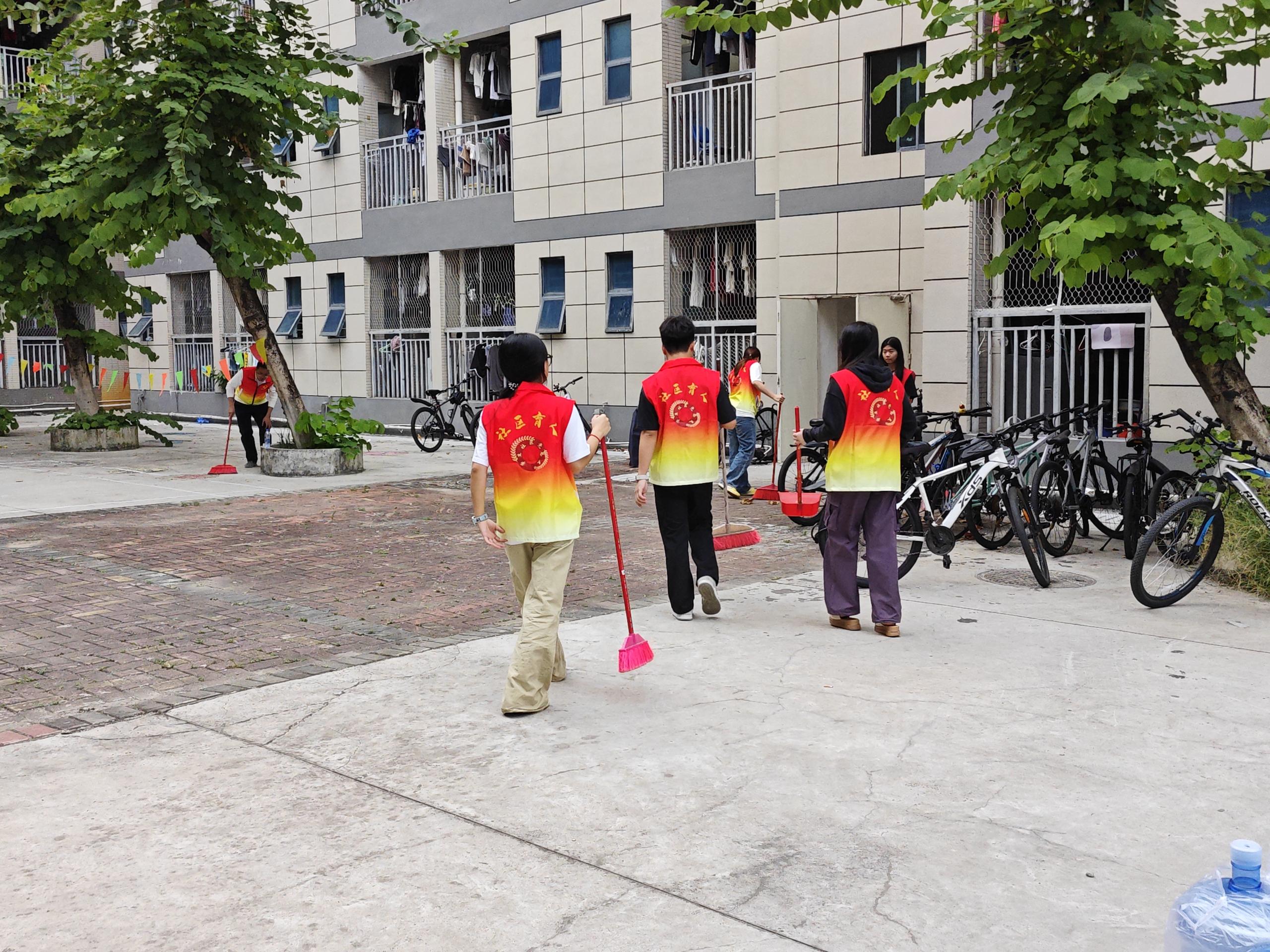 在清理过程中,同学们不放过任何一个细节,无论是楼道角落里堆积的灰尘,还是宿舍门口隐藏的垃圾,都被一一清除。他们用自己的双手和汗水,为社区环境的改善贡献着力量。